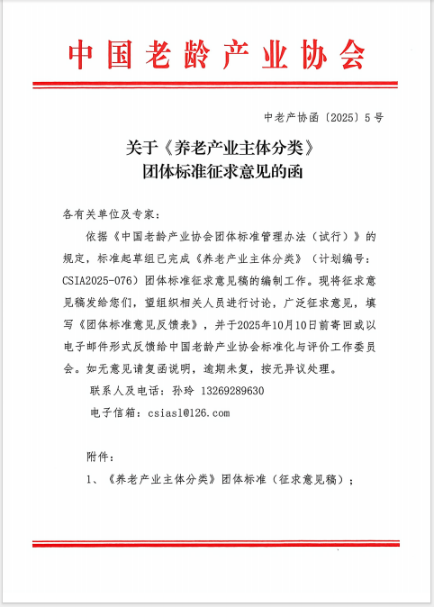 • 关于《养老产业主体分类》团体标准征求意见的函